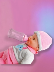 Tartalmaz egy üveget és egy cumit, amelyek lehetővé teszik a teljes gondoskodó játékot.