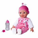 A babához tartoznak olyan kiegészítők, mint a cumisüveg és a cumi, amelyek megkönnyítik a szerepjátékot és a baba gondozását.