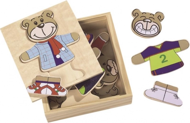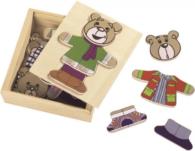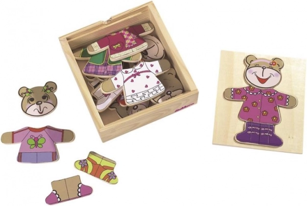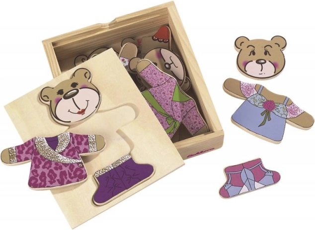 Öltsd fel a macidat ezzel a szórakoztató kirakóval! Tartalmaz 20 darabot és praktikus fa dobozban érkezik.