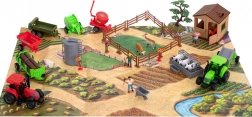 - Összehajtható istálló, 2 traktor, 3 pótkocsi/felépítmény (pl. vetőgép, bálázó, bálaszállító pótkocsi), siló, fa, 8 fa kerítéselem, 8 csatlakozó (alap) a kerítéshez, 6 téglaelem, vályú/itató, gazda figurák, állatok, figyelmeztető táblák és további kiegészítők