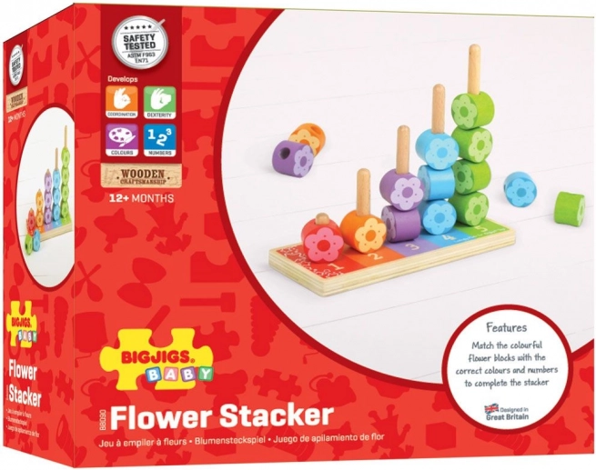 A BIGJIGS fa színes virágok felrakó ideális fejlesztő játék az első tanuláshoz. Játék közben a gyerekek természetesen ismerik meg a színeket, válogatják a formákat és gyakorolják a számolást, miközben fejlődik a finommotorikájuk. A masszív fa kivitel és a sima élek biztonságos és hosszan tartó használatot biztosítanak.