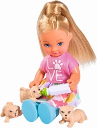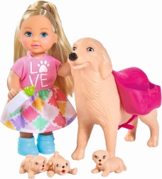 Ezzel a bájos készlettel a gyerekek órákig szórakozhatnak az állatgondozás témájában. Evi baba stílusos ruhát visel, és a kutyamamával és a három kölyökkel együtt tökéletes világot teremt a ötletes történetekhez. A mellékelt kiegészítők támogatják a szerepjátékot és a felelősség játékos elsajátítását.