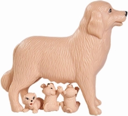 A gyerekek etethetik, hordozhatják és a kutyamamához fektethetik a három kölyköt – tökéletes a gondoskodó szerepjátékhoz és az empátia fejlesztéséhez.