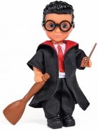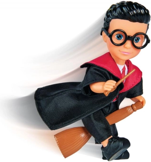 Timmy bábfigura varázslóként, mágikus köpenyben, varázspálcával és seprűvel. A figura mérete 12 cm.