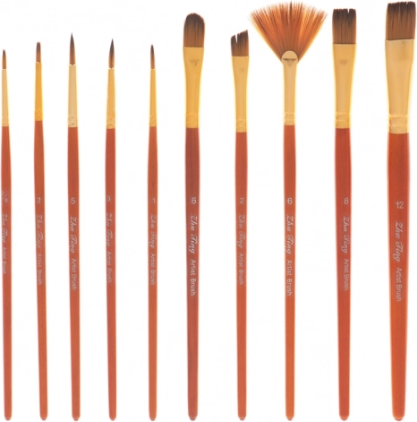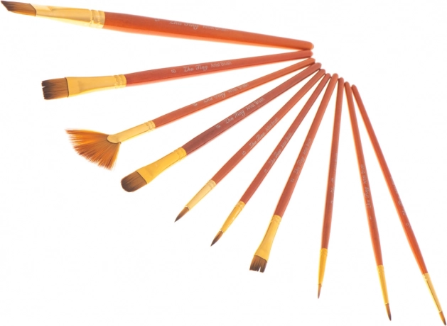 A készlet 10 darab művészecsetet tartalmaz, amely különböző festéktípusokhoz használható. A különböző vastagságú végek segítenek összetettebb formák létrehozásában, a vékony ecsetek pedig lehetővé teszik a művészeti alkotások minden részletének finomítását. Mindegyik ecset számozott, ami könnyíti a megfelelő méret kiválasztását.