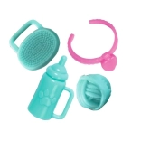 A készlet etetőtálakat, üveget, kefét és játékokat tartalmaz a kiscicának, ami még több játéklehetőséget nyújt.