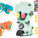 Két stílusos, dinoszaurusz alakú pisztoly lehetővé teszi a puha habgolyók biztonságos és hatékony lövését. Ideális páros játékokhoz és versenyekhez.