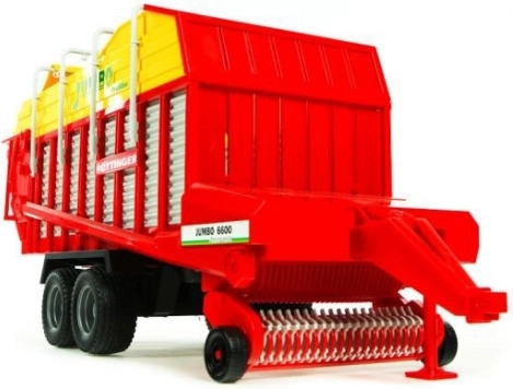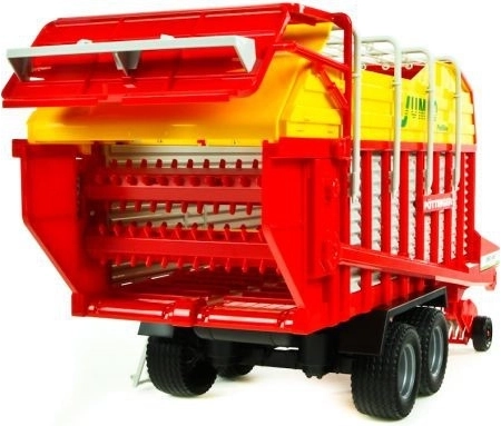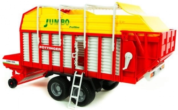 Hozd el az aratás valódi hangulatát az udvarra. A BRUDER Pöttinger Jumbo 6600 takarmánygyűjtő kocsi masszív felépítésével, jellegzetes piros–sárga dizájnjával és precíz részleteivel hűen idézi az eredeti mezőgazdasági gépet. A gyerekek könnyedén kinyithatják az oldalfalakat és a hátsó ajtót, lehajthatják a létrát, a tetőkorlátok eltávolításával pedig beláthatnak a kocsi belsejébe.