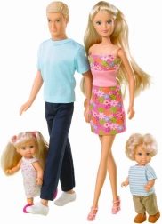 A Steffi babacsalád szett tökéletes a gyermekek kreativitásának fejlesztésére és a történetmesélési képességek fejlesztésére. A szett négy babát tartalmaz: Steffi, Kevin és gyermekeik, Timmy és Evi, mindannyian a casual elegancia stílusában öltöztetve. A babák magassága 30 cm, 29 cm, 12 cm és 12 cm.