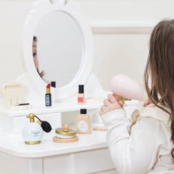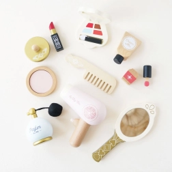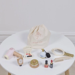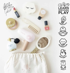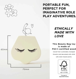 A LE TOY VAN Honeybake kollekciójának ez a gyönyörű szettje autentikus élményt nyújt a sminkelés és a hajápolás világából. A természetes pamut textiltáska lekerekített élű fa kiegészítőket rejt, vízbázisú, nem mérgező festékekkel lakkozva. Ideális kis sminkmestereknek, akik biztonságosan és fantáziadúsan szeretnének alkotni.