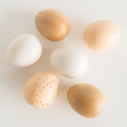 - Csomag tartalma: 6 fa tojás + 1 fogantyús fa ládika