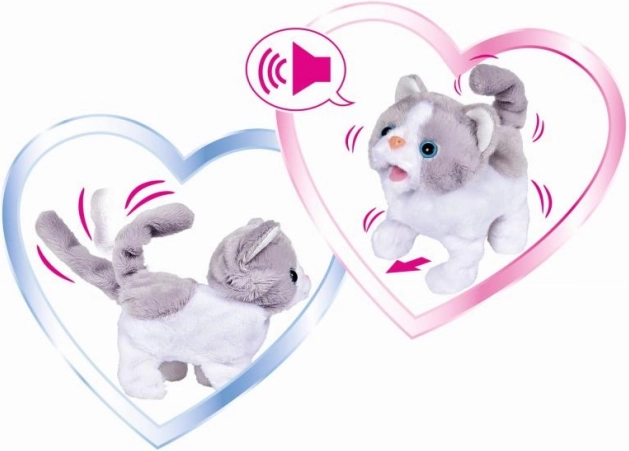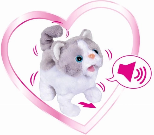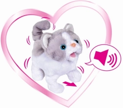 Ez a szürke-fehér CHICHI LOVE plüss cica tökéletesen puha, és tele van meglepetésekkel. Az interaktív funkcióknak köszönhetően még több örömet nyújt – tud mozogni, csóválja a farkát, és élethű hangokat ad ki, amelyek életre keltik a játékot.