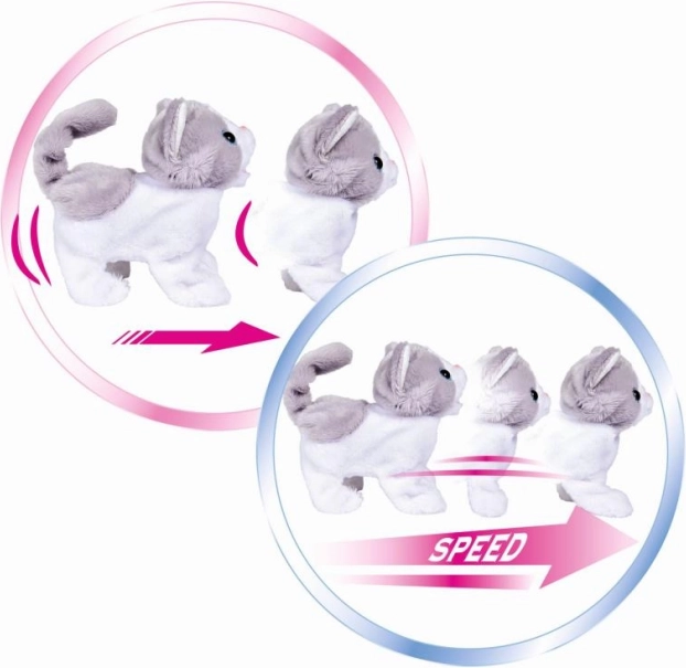 Aranyos interaktív plüss cica, amely puha tapintású és örömet szerez minden gyermeknek. Két sebességgel mozog, csóválja a farkát, és vidám hangokat ad ki. Ideális társ mindennapi játékhoz és ölelgetéshez.