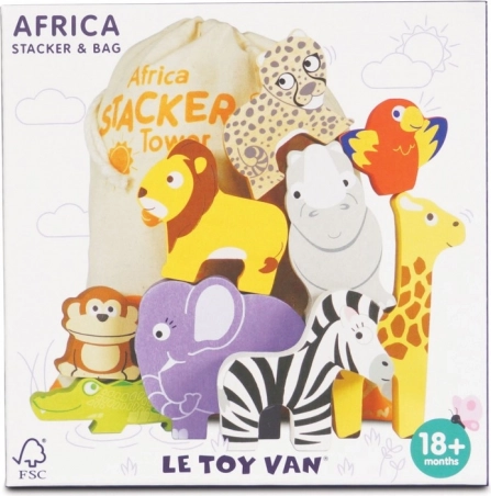Ez a játékos készlet egy csipetnyi vad természetet hoz a gyerekszobába. A gyerekek a lehető legmagasabb tornyot építhetik az állatokból – zsiráf, oroszlán, elefánt, zebra, majom, orrszarvú, gepárd, krokodil és papagáj – miközben gyakorolják az egyensúlyt, a türelmet és a képzeletet. Az egyensúlyozó játék fejleszti a logikus gondolkodást, és segíti az alakok és színek érzékelését.