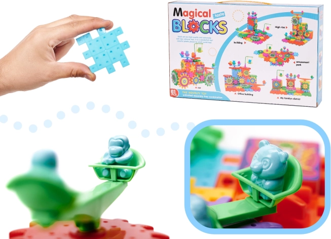 A Varázslatos Építőkockákkal a szórakozás nem ér véget. Biztos lehet benne, hogy ezzel a készlettel gyermeke nem fog unatkozni. Az áttétes fogaskerék formájú kockák nagyszerű szórakozást nyújtanak, támogatják a gyermekének helyes fejlődését. Az építés során a kis építőmester kreativitását ébreszti fel, logikai és kreatív gondolkodásra is képessé válik, valamint kézügyességét fejleszti. Az elem- és színválaszték korlátlan építési lehetőségeket kínál.