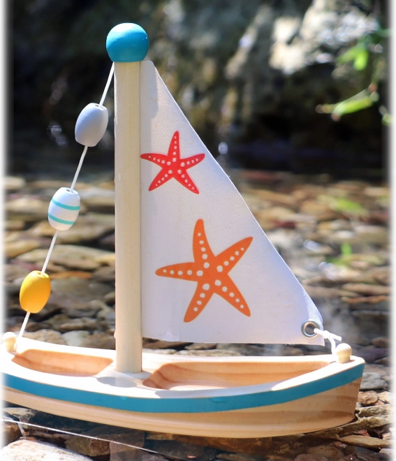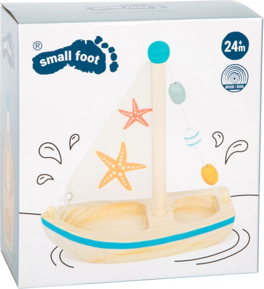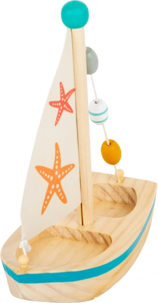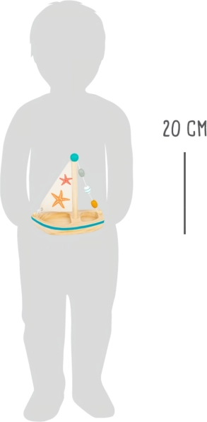 Ez a minőségi Small Foot vízi játék örömet szerez a gyerekeknek a szabad játék során vízben és azon kívül is. A sima felületű fa hajótest és a tengeri csillag motívumos textil vitorla biztonságos használatot és vonzó megjelenést biztosít. Úszó kialakítása ideális a kádba, a medencéhez vagy nyári vizes játékokhoz a természetben.