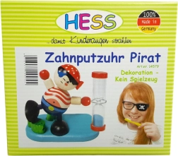 Tedd szórakoztatóvá a gyerekek napi higiéniáját a HESS márka játékos, kalóz alakú homokórájával. Az óra az ideális 2 percet méri a fogmosáshoz, praktikus fogkefetartóval rendelkezik, és minőségi, kezeletlen fából készült Németországban.