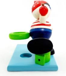 A kalóz figura mögött praktikus tartó található, amely a gyerek fogkeféjét mindig kéznél és szárazon tartja.