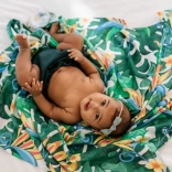 A Lush Garden mintájú, könnyű és légies bambusz–pamut muszlin pelenka a Tommy Lise-től gyengéd a baba bőréhez, légáteresztő, hűsítő és kellemes tapintású. Nagy, 120 × 120 cm méretének köszönhetően takaróként, pólyaként és szoptatás közbeni takaráshoz is használható.