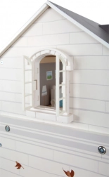 Az olyan részletek, mint a működő csengő, a tolóajtók, a nyitható ablakok és a fiókos éjjeliszekrény növelik a játék realisztikusságát és interaktivitását. A fa- és műanyag elemeket tartalmazó bútorzat a csomag része, ami fokozza az autentikus játékélményt.