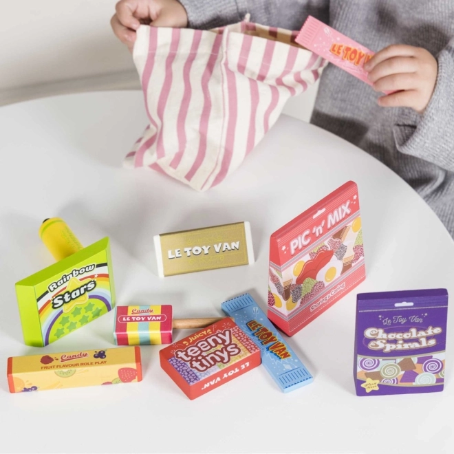 Merüljön el a fantázia világában a Le Toy Van egyedi édesség szettjével. A szett gondosan tervezett fa édességeket tartalmaz, amelyek ösztönzik a kreatív játékot és a készségfejlesztést gyermekeik számára.