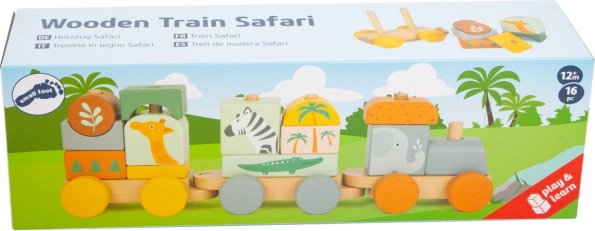A fa Safari vonat játszótárs és oktatási eszköz a gyerekek számára. 1 mozdonyból, 2 kocsiból és 13 részből áll, amelyeket könnyedén kombinálhatnak a gyermekek fantáziája és elképzelései szerint. Minden darab állatmotívumokkal van illusztrálva, ami segít a kreativitás és képzelőerő fejlesztésében.