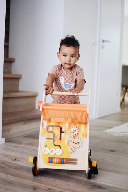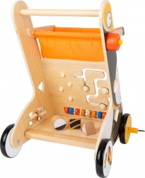 A babajáró színes kialakítású és különféle tevékenységeket kínál három oldalon, beleértve a beillesztőket, számlálókat és mozgó labirintust. Az első kerekek "lábakkal" vannak felszerelve, amelyek mozgás közben vicces hangot adnak, ezáltal növelve a szórakozást. Hasznos kiegészítője egy könnyen karbantartható tárolókosár is.