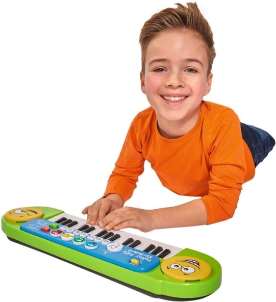 Ez a színes gyerek keyboard remek útitárs a zene világába. A 32 billentyűnek, az előre beállított demódaloknak és ritmusoknak köszönhetően a gyerekek könnyedén kísérleteznek a hangokkal, fejlesztve hallásukat és finommotorikájukat. A játékos dizájn és az egyszerű kezelés támogatja a kreativitást és a természetes kíváncsiságot.