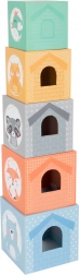 A „Pastell” rakosgató torony masszív kartonkockákat kombinál fa állatfigurákkal, modern pasztell dizájnban. Minden kockaoldal útmutatást ad a helyes sorrendhez, így a gyerekek játék közben tanulnak válogatni és fejlesztik térbeli tájékozódásukat. Az ablakoknak és ajtócskáknak köszönhetően az állatkák „beköltözhetnek” a kockákba, ami ösztönzi a fantáziát és a szerepjátékot.