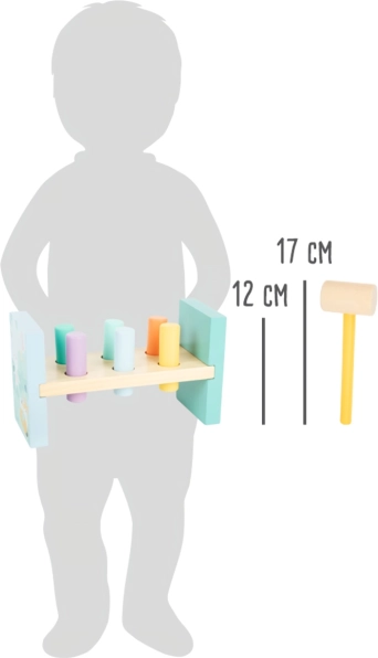 Ezt a játékot a gyerekek finommotorikájának és kéz-szem koordinációjának fejlesztésére tervezték. A színes pálcikák és a kis kalapács játékra ösztönzik a gyerekeket, miközben erősítik az izmaikat és javítják a koordinációt.