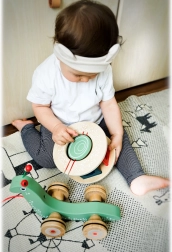 A húzható csiga ideális a gyerekek mozgáskészségeinek és egyensúlyának támogatására. Remek társ az első sétákhoz.