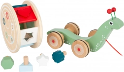 Bemutatjuk a csinos fa csigát zsinóron, amely nemcsak szórakoztat, hanem segít is a gyermeke fejlődésében. Könnyű súlya és könnyen forgó kerekei miatt ideális azoknak a gyerekeknek, akik most kezdenek járni, és segíti a koordinációt és egyensúlyt. A csiga továbbá öt különböző formaválogatóval rendelkezik, amely serkenti a kognitív képességeket és a finommotorikus készségeket.