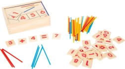 Számolószett Small Foot ideális segédeszköz óvodás és iskolás korú gyerekek számára. A színes számolópálcikákkal és fa táblácskákkal a gyerekek játékosan és interaktívan tanulhatják meg a matematika alapjait.