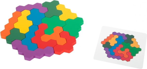 A hatszög alakú mozaik játék célja a gyerekek logikájának és kreatív gondolkodásának fejlesztése. Minden darabot gondosan fából készítettek, ami tartósságot és hosszú távú szórakozást garantál. A játék, amely szórakoztat és oktat.