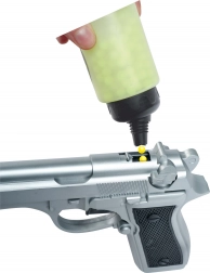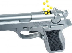 Ez a 21 cm hosszú golyós pisztoly ideális gyors és szórakoztató párbajokra kertben vagy otthon. A rugós mechanizmusnak és a műanyag kialakításnak köszönhetően könnyű, jól kézbe illik és egyszerűen kezelhető. A tár felülről tölthető, így a golyók pillanatok alatt pótolhatók, és a móka folytatódhat.