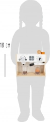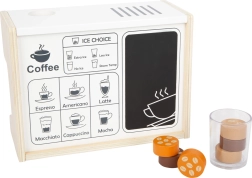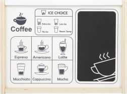 Professzionális megjelenésével ez a kávéfőző lehetővé teszi, hogy a gyermekek különféle kávékat készítsenek, és igazi barista-élményt éljenek át. Tartalmaz forgatható gombokat, amelyek kattogó hanggal növelik a játék valósághűségét. A hátulján egy tábla található a napi ajánlatok krétával való felírásához, ami serkenti a kreativitást.