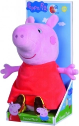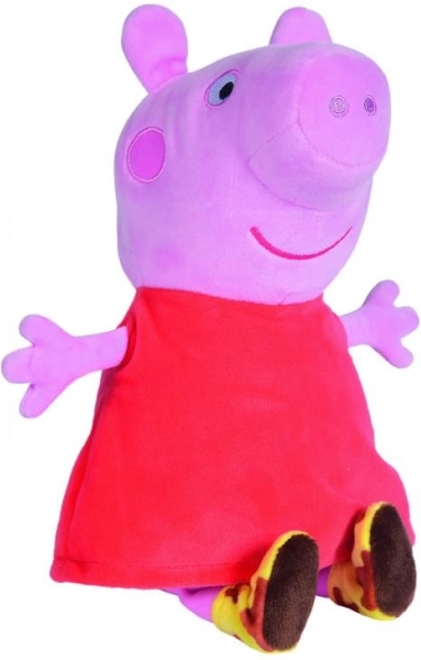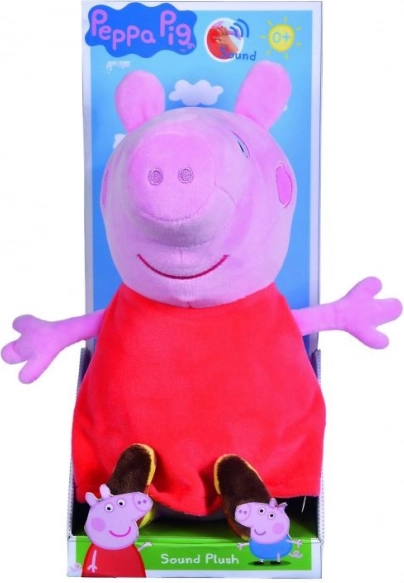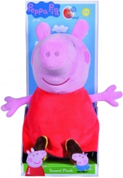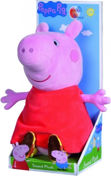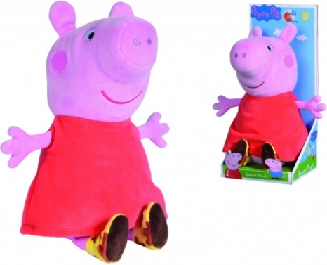 A népszerű Peppa Pig sorozat hősnője hangot adó plüss barátként. Elég finoman megnyomni a pocakját, és Peppa vidám hangokkal szólal meg, amelyek támogatják a játék örömét és a gyermeki képzelet fejlődését. A selymes anyag kíméletes a gyerekek bőréhez és ölelgetésre csábít.