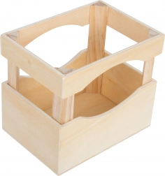Ez a stílusos fa ládika 6 üdítős üveggel ideális kiegészítő a gyerekkonyhába vagy a játékboltba. A gyerekek fejlesztik fantáziájukat, szociális készségeiket és finommotorikájukat a „limonádék” felszolgálása és a boltos játék közben.