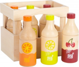 Szórakoztató készlet gyerek konyhába és boltba – fa ládika 6 üveg limonádéval. Narancs-, citrom- és cseresznyeváltozatot tartalmaz. Masszív tömörfából készült a hosszan tartó szórakozás és a biztonságos játék érdekében. Az egyszerű illusztrációk megkönnyítik a színek és italok fajtáinak felismerését még a legkisebbek számára is.