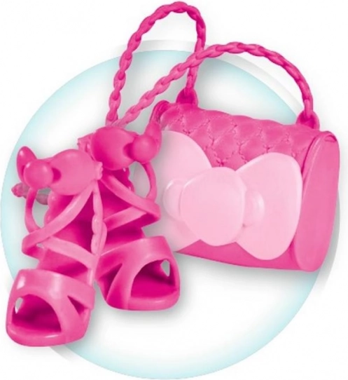 A nyaklánc, fejdísz és kis táska részei a játéknak, ami így még szórakoztatóbbá teszi az öltöztetős játékot.