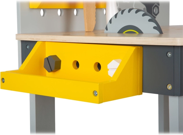 A Miniwob gyermek munkapad végtelen lehetőségeket biztosít a kicsi barkácsolóknak képességeik fejlesztésére. Különböző eszközökkel, mint korongos fűrész, elektromos csavarhúzó és kalapács, ez a munkaasztal ideális a kreatív játékra és a finommotoros készségek javítására.