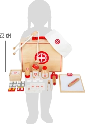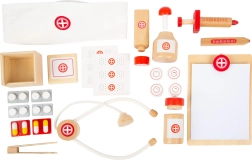 Gyermek orvosi táska Small Foot ideális választás kis orvosok és orvosnők számára, akik szeretnék felkészíteni magukat a betegek látogatására. Ez a táska minden fontos orvosi eszközt tartalmaz, amelyek teljesen fából készültek, és klasszikus fehér-piros színekben csomagoltak.