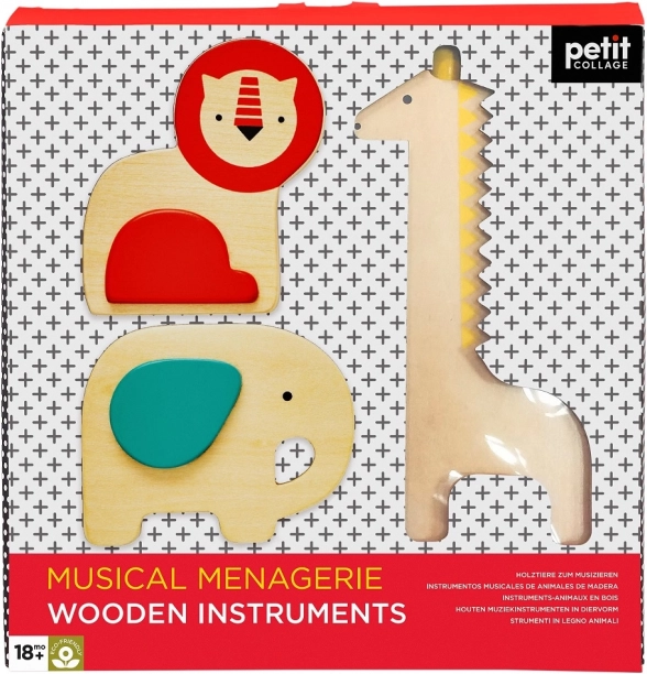 Bájos, fából készült hangszerkészlet a legkisebbeknek, amely fejleszti a ritmusérzéket, a hallást és a finommotorikát. Tartalmaz zsiráfos guirót és két rumbatököt (elefánt és oroszlán). Készült FSC-tanúsított fából, nyomtatva vízbázisú festékekkel, és újrahasznosítható csomagolásban érkezik; biztonságos 18 hónapos kortól.