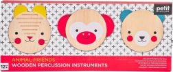 Ez a játékos, háromdarabos ütőhangszer-készlet a Petit Collage műhelyéből ideális bevezetés a zene világába. A vidám állatmotívumok (majmocska, medve és nyuszi) motiválják a gyerekeket a ritmusok és hangok felfedezésére, támogatva a hallás és az érzékelés természetes fejlődését.