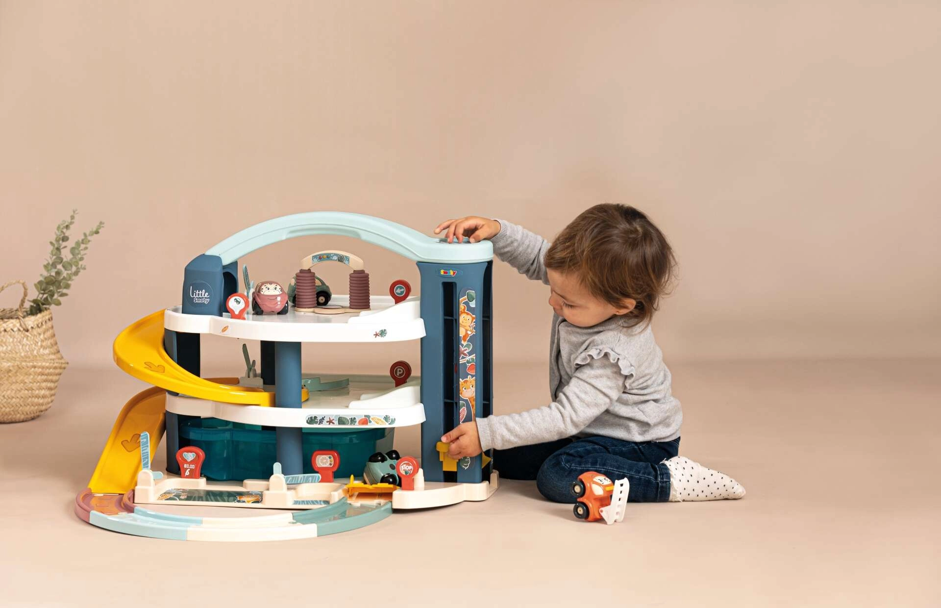 Fedezze fel a strapabíró, háromszintes Little Smoby garázst mega rámpával, működő lifttel, autómosóval, benzinkúttal és heliporttal. A csomag része egy kisautó és egy helikopter. A praktikus hordfogantyúnak köszönhetően a garázs könnyen hordozható, és rejtett tárolóhellyel rendelkezik a kisautók számára. Ideális ajándék 18 hónapos kortól, Franciaországban készült.