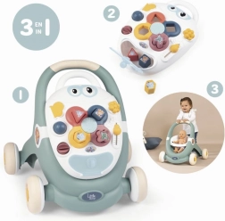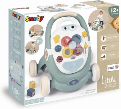 A Little Smoby járássegítőt 12 hónapos kortól tervezték, és számos tevékenységet biztosít: tolás, játékok járműként való használata, valamint interaktív tábla a motoros készségek és érzékek fejlesztéséhez.