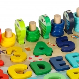 Színes fa oktatójáték 3 az 1-ben, amely ötvözi a formák és számok válogatóját, a számlálót és a mágneses horgászjátékot. Támogatja a színek, formák és számok tanulását, fejleszti a finommotorikát, a koncentrációt és a türelmet. A minőségi megmunkálású, sima élű fa elemek biztonságosak a gyermekek számára, és játékos felfedezésre ösztönöznek.