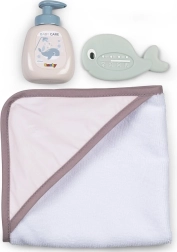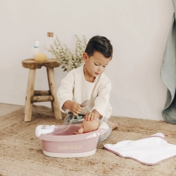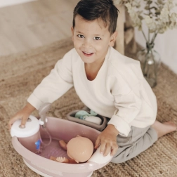 Tartalmaz hőmérőt, üvegcsét és törülközőt, amelyek még valóságosabbá teszik a játékot, és tanítják a gyerekeket a babák gondozására.