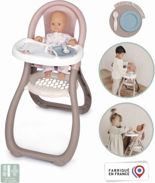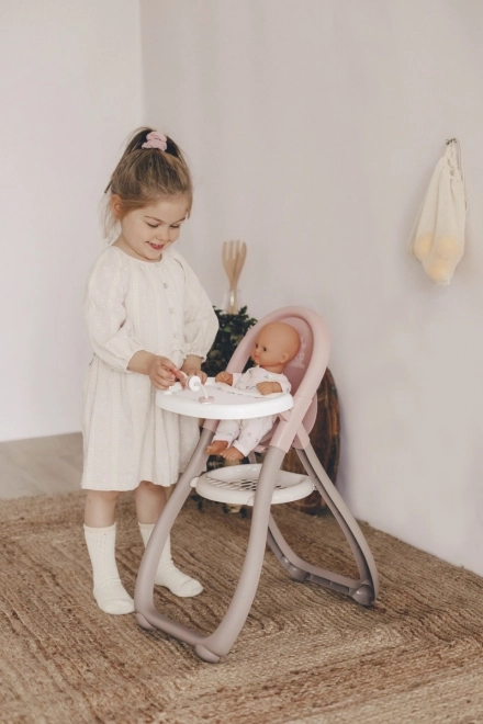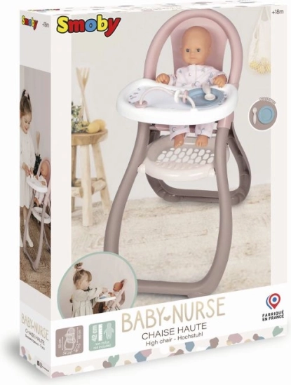 Ez a SMOBY Baby Nurse kollekcióból származó babák etetőszéke ideális játékkiegészítő a kis "anyukák" számára, akik szeretnének gyakorolni a babáik gondozását szeretettel és empátiával. Tartalmaz egy étkezőasztalt, kanalat és tányért.