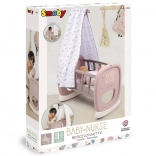 A Smoby Baby Nurse baldachinos babaágy valósághű szülős-játékot kínál a gyerekeknek. A lekerekített ringató talpnak köszönhetően a kis gondoskodók finoman elringathatják babájukat, miközben a puha baldachin meghitt környezetet teremt.